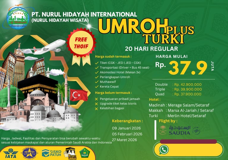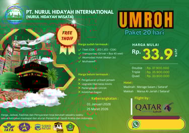 Temukan pengalaman umroh tak terlupakan bersama kami. Percayakan perjalanan ibadah Anda pada Nurul Hidayah Wisata.